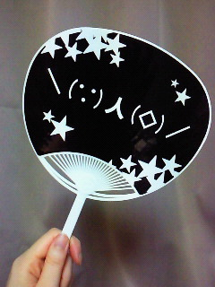 隣のスペースの方にうちわを配りつつ、手荷物の整理。